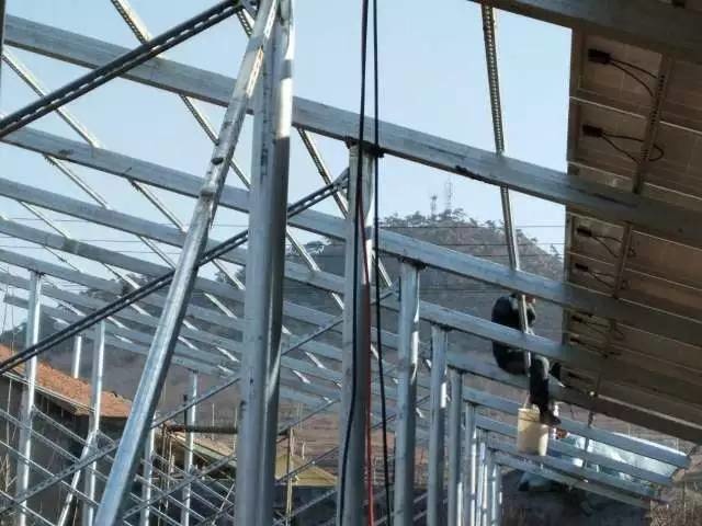 對(duì)于金屬屋面來說,需要將光伏系統(tǒng)的鋼結(jié)構(gòu)穿透原防水層及壓型鋼板,固定在建筑的主體鋼結(jié)構(gòu)上;再參照金屬屋面防水做法,進(jìn)行隔汽、保溫及防水處理。施工的重點(diǎn)是去銹蝕、密封、對(duì)基層及外圍涂刷防水涂料。