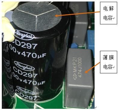 (2)電解電容耐壓值一般為500-550V,薄膜電容耐壓值一般為1000-1300V,薄膜電容能承受2倍于額定電壓的浪涌電壓的沖擊,能長期承受反向脈沖電壓。