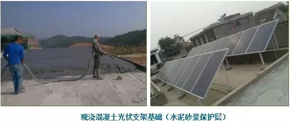 上圖是現(xiàn)澆混凝土框架加泥砂漿保護(hù)層。這個(gè)方案是與建筑結(jié)構(gòu)整體規(guī)劃,可以同步規(guī)劃,同步設(shè)計(jì)和同步施工。這是比較好的安裝方式,因?yàn)樗陧?xiàng)目完成之后的用電量預(yù)測(cè)可以非常有針對(duì)性的確定裝機(jī)規(guī)模,達(dá)到投入產(chǎn)生的最優(yōu)結(jié)果。