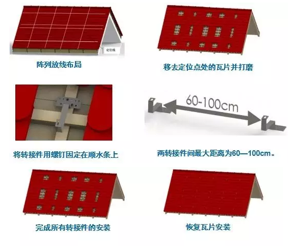 坡屋頂上的屋面瓦作為屋頂?shù)难b飾材料,電池板是掛在屋面上。它是怎么掛的呢?