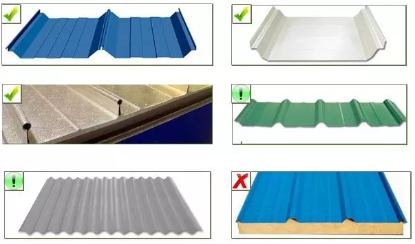 上圖中第一種是和第二種是壓型鋼板是經(jīng)??梢杂玫降?,直接夾在棱形上就可以了。第二種是屬于直立鎖邊,它用在公共建筑比較多,比如說(shuō)火車站、民用機(jī)場(chǎng),因?yàn)樗氖褂媚晗薇容^長(zhǎng)。第三種和前兩種相比,它沒(méi)有夾具的地方,但只能通過(guò)打釘,但是打釘?shù)陌惭b容易漏水,即便把緊固螺釘和金屬板密封得再好。建議用在一些特殊的地方,比如說(shuō)車棚,就是對(duì)防水要求沒(méi)有特別高的地方,在這上面可以安裝孔覆板。