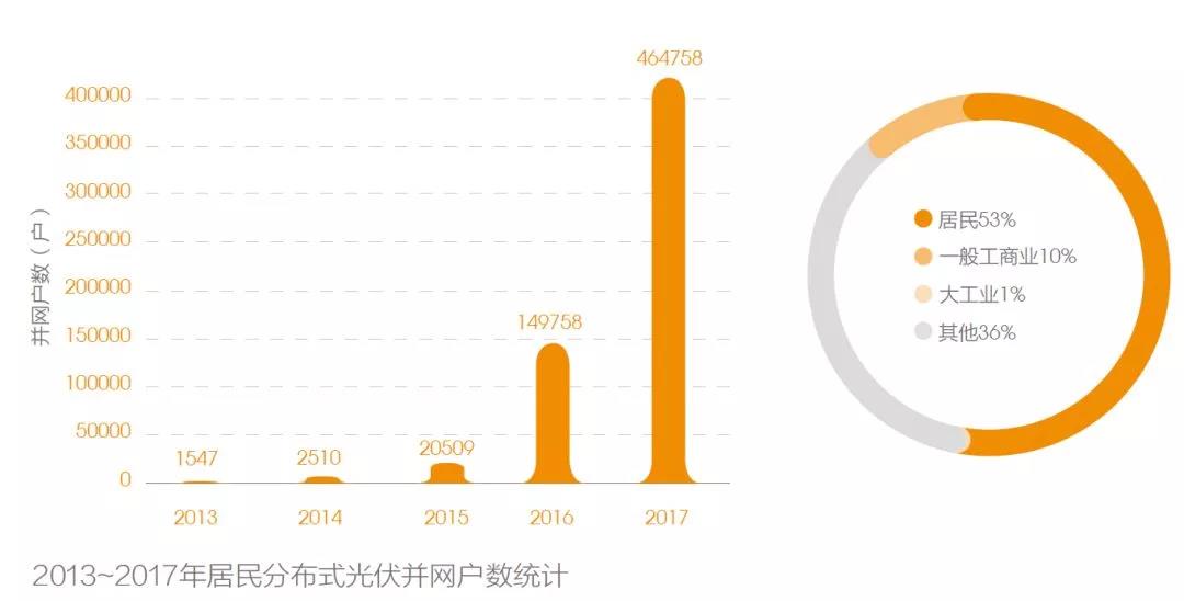 日前,國家電網(wǎng)公司發(fā)布《促進(jìn)新能源發(fā)展白皮書2018》。其中,有這樣的一組數(shù)據(jù):2017年全國新增戶用光伏464758戶,全國居民光伏同比增長210%。