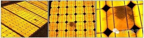 圖2的多晶硅型電池板以砸痕部分為中心,裂紋呈蜘蛛網(wǎng)狀擴散。