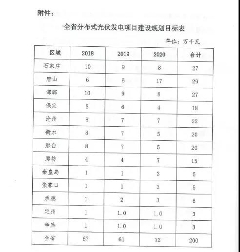 6月20日,河北省發(fā)展和改革委員會(huì)正式印發(fā)《全省分布式光伏發(fā)電建設(shè)指導(dǎo)意見(jiàn)(試行)》。意見(jiàn)中指出到2020年,力爭(zhēng)全省新增分布式光伏發(fā)電規(guī)模2GW,累計(jì)達(dá)到4GW,其中2018年計(jì)劃新增670MW。