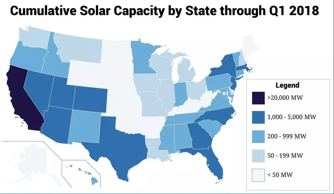 2018年Q1美國光伏裝機(jī)2.5GW 預(yù)計(jì)全年新增10.8GW