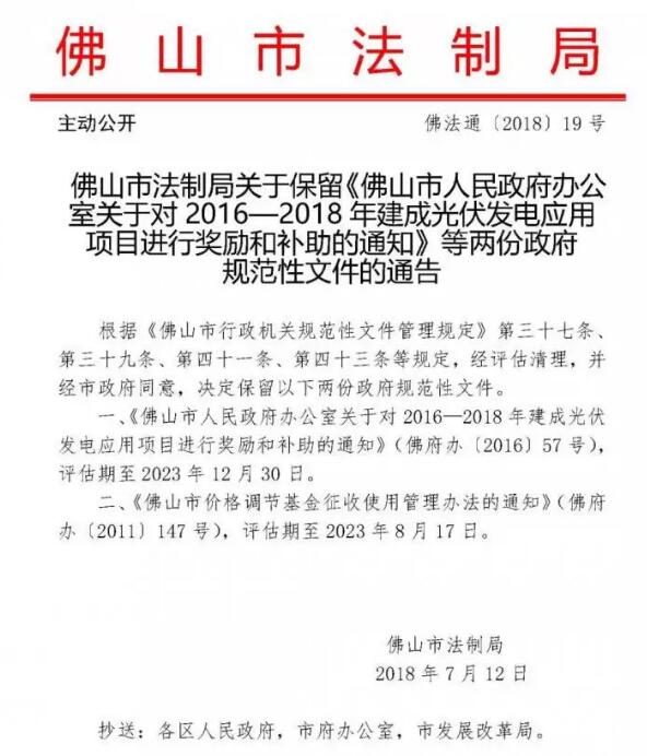 一切真相大白了!該政策是針對原佛山補(bǔ)貼政策的廢除、修改、延續(xù)的政策評估期延長,并不是佛山光伏補(bǔ)貼延長。小編在這里要提醒各位,佛山的光伏補(bǔ)貼范圍是針對的是2018年底并網(wǎng)的光伏項(xiàng)目,大家還是思考怎么趕上這時(shí)間吧。