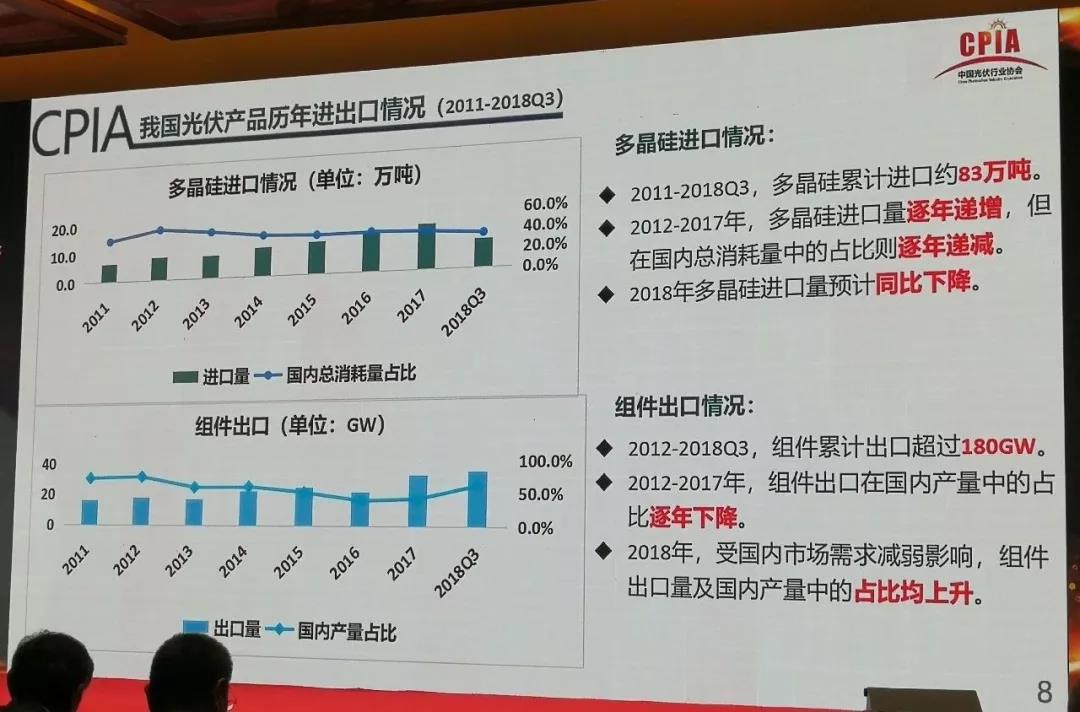 結合歷年出口情況,2011-2018年,多晶硅累計進口約83萬噸,今年多晶硅進口量預計同比下降。出口市場的變化,同樣也是集中度在下降的問題。