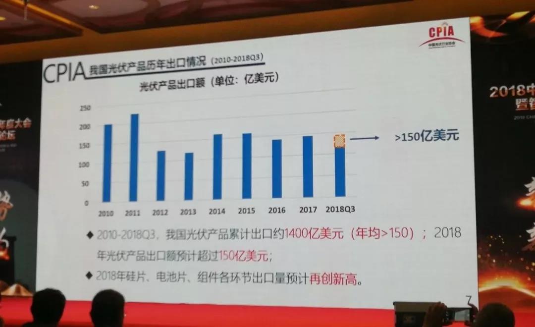 2018年1-10月光伏產(chǎn)品(硅片、電池片、組件)出口總額133.1億美元,同比 增長14.6%(24.7% 19.4%);硅片、電池片受價格跌幅影響,出口價減量增;組件出口額和出口量雙升,均已超過2017年全年,占比回升(72%→80.2%)