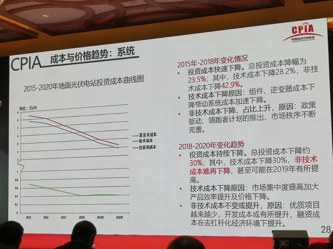 王勃華表示,產(chǎn)業(yè)發(fā)展的速度非??欤?022年,組件成本可降低為1元/W。預計2022年仍會有30%左右的下降,主要表現(xiàn)在技術方面。
