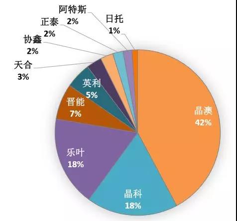 圖二 組件廠商組件安裝容量份額(來源:大同基地監(jiān)測月報)