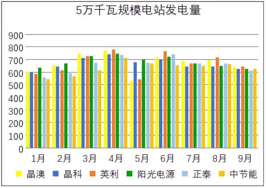 圖四大同一期領(lǐng)跑者中6個5萬千瓦單體規(guī)模電站發(fā)電量(來源:大同基地監(jiān)測月報)