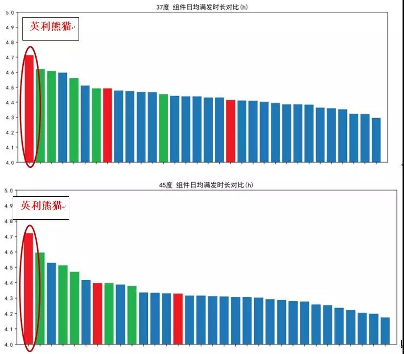 圖五 5°、37°、45°傾角下各組件日均滿發(fā)時長(來源:中國電科院)