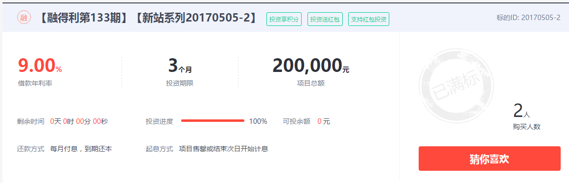 接下來以【融得利第133期】【新站系列20170505-2】為例。