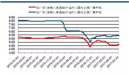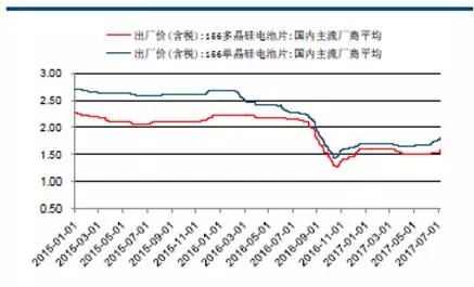 去年底發(fā)改委下達(dá)了《國家發(fā)展改革委關(guān)于調(diào)整光伏發(fā)電陸上風(fēng)電標(biāo)桿上網(wǎng)電價(jià)的通知》,在今年6月30日之后,將I至III類資源區(qū)新建光伏電站的標(biāo)桿上網(wǎng)電價(jià)分別調(diào)整為每千瓦時(shí)0.65元、0.75元、0.85元,比2016年電價(jià)每千瓦時(shí)下調(diào)0.15元、0.13元、0.13元。此前市場普遍認(rèn)為,6.30之前的搶裝將透支三季度的裝機(jī)需求,光伏產(chǎn)業(yè)鏈的價(jià)格或?qū)⒏ツ耆径纫粯映霈F(xiàn)深度調(diào)整,但今年觀測到價(jià)格信號(hào)有所不同。