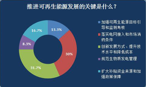 在調(diào)查問卷中,還有8.3%的受訪者認為,推進可再生能源發(fā)展的關(guān)鍵在于規(guī)范生物質(zhì)發(fā)電管理。