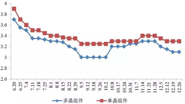 近日,不少業(yè)內(nèi)朋友經(jīng)常和兔子君提到,怎么今年過(guò)了630,組件的價(jià)格卻遲遲沒(méi)有降價(jià)呢?其實(shí)可能很多朋友已經(jīng)關(guān)注到這一點(diǎn)了,所以兔子君特意找出了去年630之后組件的價(jià)格走勢(shì)。