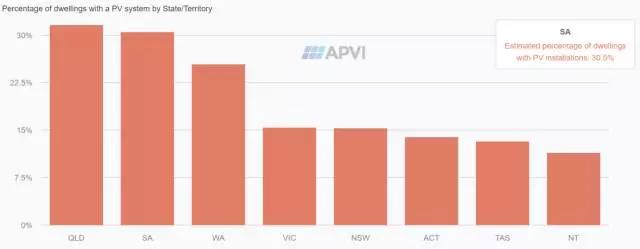 澳洲各州光伏系統(tǒng)的家庭安裝率