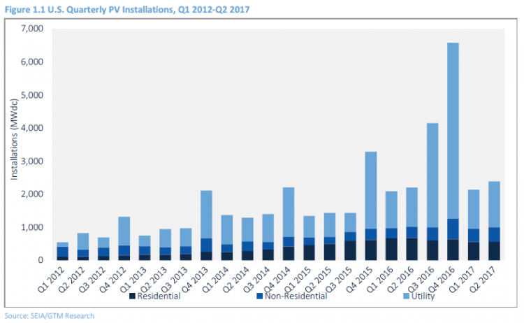 2017年Q2美國(guó)新增光伏裝機(jī)2.4GW 同比增長(zhǎng)8%