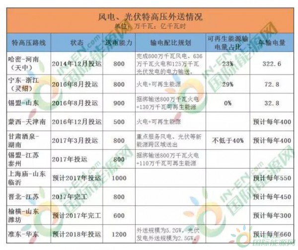 2017年上半年,國內(nèi)的棄風(fēng)、棄光形勢依然嚴(yán)峻?! ≡诟鞣N消納新能源的建議中,加大外送通道建設(shè)一直都被當(dāng)做重中之重,實(shí)際上國網(wǎng)和南網(wǎng)也正在做這方面的努力,其中,國家電網(wǎng)到2017年9月已經(jīng)投運(yùn)了八交八直16條