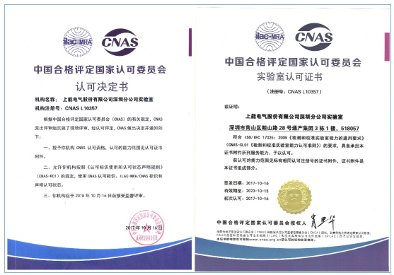 上能電氣獲得CNAS實(shí)驗(yàn)室認(rèn)可證書(shū)