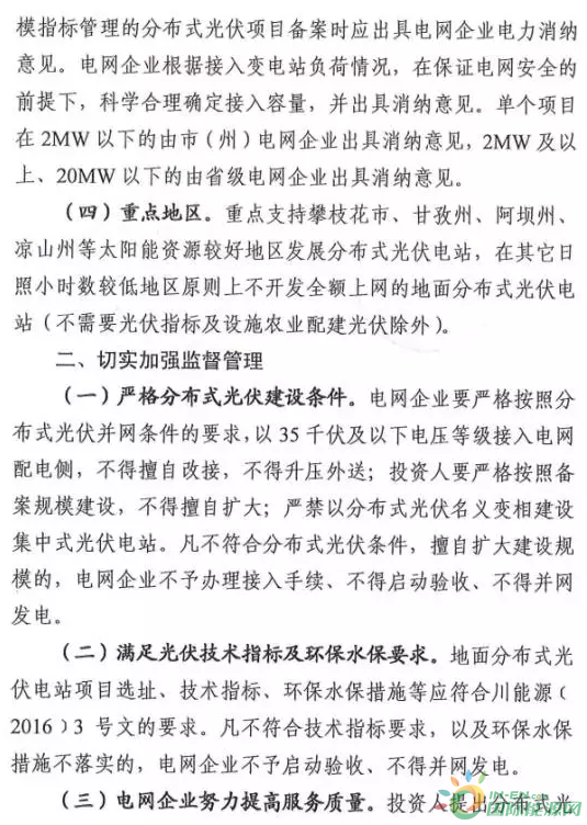 另外,文件還要求單體規(guī)模2MW及以上的分布式光伏項目應(yīng)當(dāng)于當(dāng)年6月底之前報送省能源局組織優(yōu)選,市(州)發(fā)改委根據(jù)優(yōu)選結(jié)果進行備案,并且2MW以上、20MW以下的分布式項目需要由省級電網(wǎng)出具消納意見。以上意見實際上是嚴(yán)格了四川省的分布式光伏建設(shè)要求。