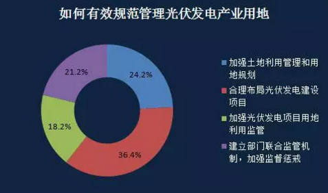 此次《意見》中,如何有效規(guī)范管理光伏發(fā)電產(chǎn)業(yè)用地?zé)o疑成為關(guān)注點。就此,中國電力新聞網(wǎng)網(wǎng)站、微信、微博近日發(fā)起題為“如何有效規(guī)范管理光伏發(fā)電產(chǎn)業(yè)用地?”問卷調(diào)查活動,詳細調(diào)查結(jié)果見下圖。