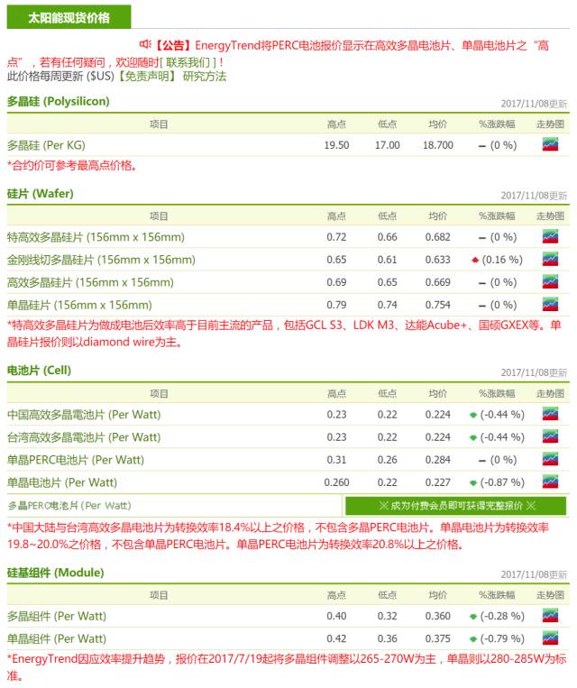 根據(jù)集邦咨詢新能源研究中心(EnergyTrend)分析,在上周單晶電池片跌價(jià)后,本周供應(yīng)鏈仍在電池片環(huán)節(jié)有較明顯的后續(xù)效應(yīng)。單晶電池片廠家之間的競(jìng)爭(zhēng)加劇,續(xù)有部份跌幅,組件端也因?yàn)樯现軉尉щ姵仄捣^大而有了讓利空間,可做出小幅價(jià)格下調(diào)。而單、多晶之間競(jìng)爭(zhēng)則還未有明顯進(jìn)展,由于當(dāng)前終端市場(chǎng)的需求主要來(lái)自先前開(kāi)發(fā)商對(duì)第四季末安裝需求的評(píng)估,因此單多晶同價(jià)的效應(yīng)要傳導(dǎo)到下游,預(yù)估還要2-4周的時(shí)間。