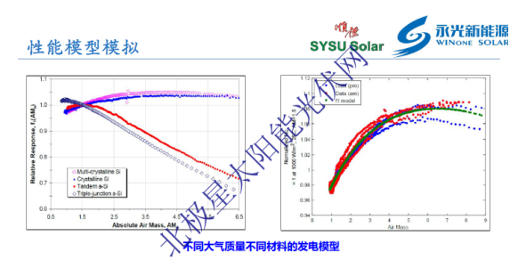 如圖,這是不同大氣質(zhì)量對不同材料的發(fā)電模型。不同大氣質(zhì)量對于不同材料的光伏組件發(fā)電量的影響是不一樣的,我們只需要在該區(qū)域把這個模型建完之后,把相應(yīng)的設(shè)備參數(shù)錄進去,就可以預期到未來整個組件、整個電站的發(fā)電情況是怎么樣的,真正做到對于未來的收益可預期。