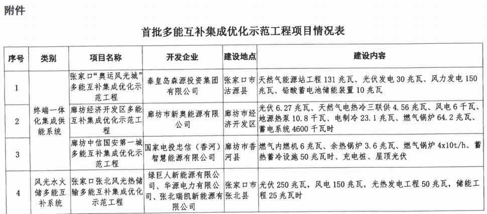 附件:首批多能互補集成優(yōu)化示范工程項目情況表