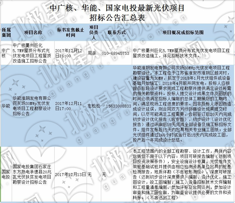 中廣核、華能、國家電投最新光伏項目招標(biāo)公告匯總:光伏發(fā)電項目工程、光伏支架、EPC等類別