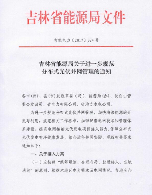 吉林能源局:進(jìn)一步規(guī)范分布式光伏并網(wǎng)管理 推進(jìn)電網(wǎng)系統(tǒng)平衡發(fā)展
