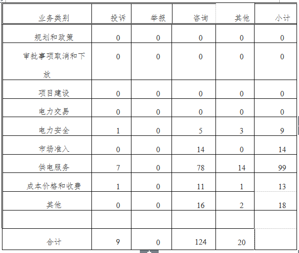 為了保護(hù)能源投資者、經(jīng)營(yíng)者、使用者的合法權(quán)益,維護(hù)能源市場(chǎng)秩序,依法履行監(jiān)管職責(zé),山西能源監(jiān)管辦積極暢通投訴舉報(bào)渠道,切實(shí)發(fā)揮12398能源監(jiān)管熱線(含12398電話、傳真、電子郵件等)的作用,認(rèn)真受理能源監(jiān)管投訴舉報(bào)事項(xiàng),定期公布投訴舉報(bào)處理情況?,F(xiàn)將2017年11月12398能源監(jiān)管熱線(以下簡(jiǎn)稱12398熱線)投訴舉報(bào)處理情況通報(bào)如下: