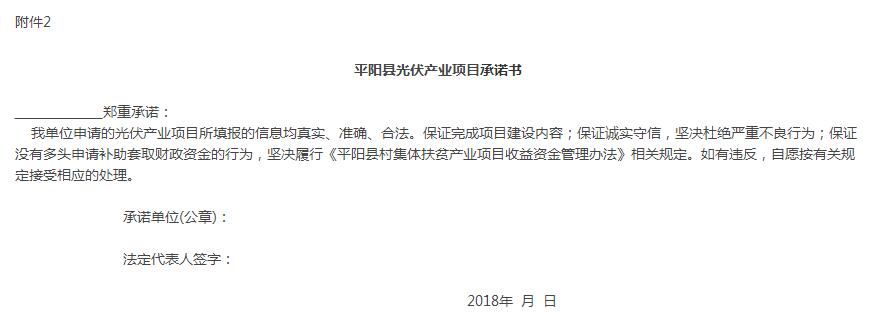 2、平陽縣光伏產(chǎn)業(yè)項目承諾書