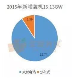 2015年新增裝機(jī)15.13GW,分布式1.39GW,占9.19%