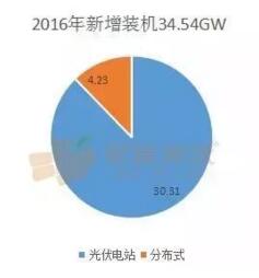 2016年新增裝機(jī)34.54GW,分布式4.23GW,占12.25%