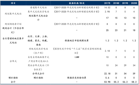 中國2017--2020年光伏新增裝機量估算(單位:GW)