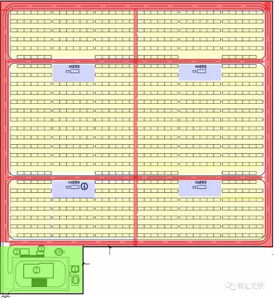 光伏陣列場區(qū)占地面積 = 光伏陣列占地面積 + 道路面積