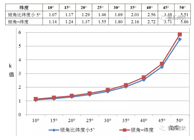表3:不同緯度時(shí),方陣傾角不同時(shí)的k值