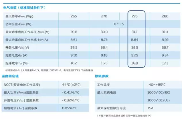 按某品牌多晶硅電池板參數:選取275Wp組件396塊,總功率108.9kWp。