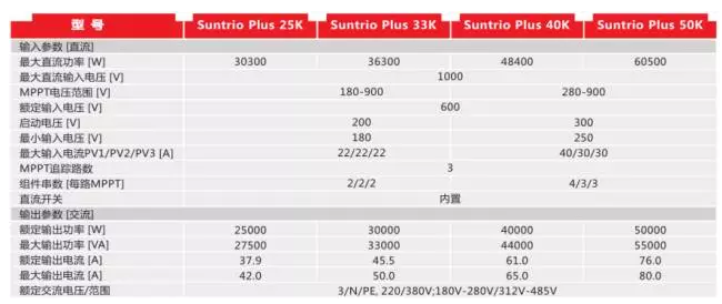光伏逆變器組件總功率為108.9kWp,根據逆變器的最大直流輸入功率,33K機器單臺最大直流輸入功率36300W,選擇三相三路MPPT逆變器Suntrio Plus 33K機器3臺