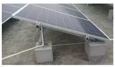 水泥平屋頂固定支架;水泥配重塊常規(guī)尺寸300*300*300mm;若當地季風較多,需適當增大配重塊。