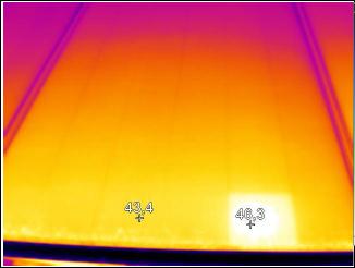 2)組件中一塊或幾塊電池的溫度在工作狀態(tài)下比其它電池高出許多,說明這些電池是問題電池,例如混入的低檔電池或并聯(lián)電阻小、漏電電流較大的電池,長期下去熱斑處封裝材料老化加快、電池更快衰減形成惡性循環(huán),直至造成組件整體衰減或報(bào)廢,這類缺陷的情形應(yīng)由組件制造方負(fù)責(zé);