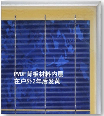 PVDF背板的內層發(fā)黃現象在多個國家均有出現(中國,比利時,西班牙,美國和德國等),發(fā)生這種現象的組件戶外使用時間少于5年,而且發(fā)生這種現象的組件來自多個不同的生產商。背板黃變說明聚合物已發(fā)生老化降解,意味著組件存在失效和安全隱患。鑒于PVDF背板發(fā)黃現象的惡劣影響,有投資機構表示,不會推薦有過發(fā)黃先例的組件廠商的產品。