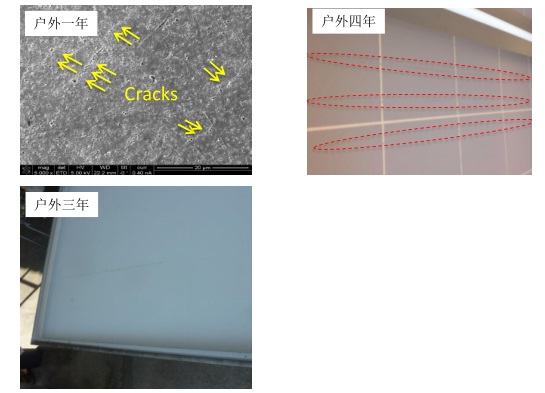案例3:聚酯(PET)背板戶外4年出現嚴重開裂