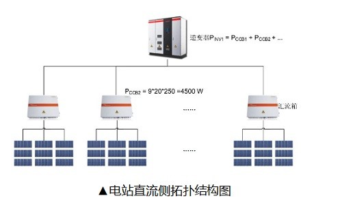 每個(gè)組串的面板數(shù)量確定后,根據(jù)匯流箱的接入串?dāng)?shù)我們就可以確定該匯流箱下究竟有多少塊光伏板,而單塊面板的容量已知,從而可以計(jì)算出該匯流箱的掛載容量:匯流箱掛載容量(PCCB)=接入組串?dāng)?shù)(N)*每串面板數(shù)*面板標(biāo)稱功率對(duì)同一逆變器下不同的匯流箱進(jìn)行加和,即可得到該逆變器的掛載容量: