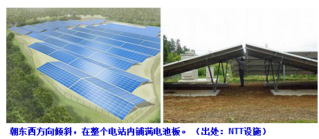 日本NTT設(shè)施6月29日面向地上設(shè)置型光伏電站,發(fā)布了太陽能電池板設(shè)置的新方法:不是以往的朝南,而是向東西方向傾斜。