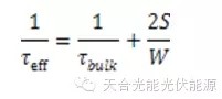 (3)光伏硅片在后續(xù)的電池制備過(guò)程中,受磷擴(kuò)散吸雜、PECVD鈍化等工序的作用,初始硅片的體壽命并不能完全代表其在電池中的真實(shí)表現(xiàn)。其中,少子壽命和表面復(fù)合速率等相關(guān)參數(shù)之間的關(guān)系如下: