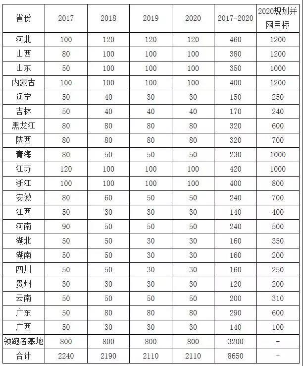 2017-2020 光伏電站新增建設(shè)規(guī)模方案(萬 Kw)