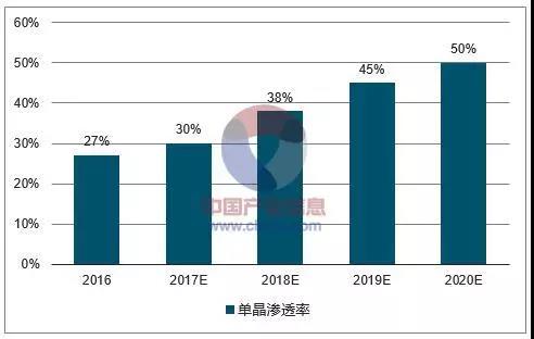 2020 年單晶光伏電站滲透率將達(dá)到 50%。對于分布式光伏來說,單晶組件具備集約 化、美觀性、高收益性等多項特點,“十三五”期間分布式光伏的巨大增長空間將進(jìn)一 步刺激單晶技術(shù)的大規(guī)模應(yīng)用,從而對單晶產(chǎn)能構(gòu)成極大需求。單晶滲透率的提升速度在國內(nèi)已經(jīng)超越大家的預(yù)期, 2014-2016 年分別為 5%, 15%,27%。2020 年單晶滲透率可達(dá) 50%。