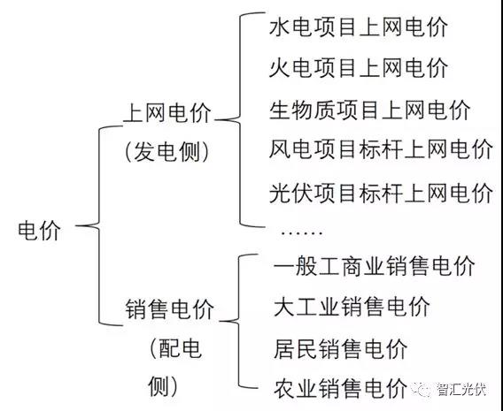 在探討平價(jià)上網(wǎng)路徑時(shí),首先要確定平價(jià)上網(wǎng)中的“價(jià)”是多少。我國(guó)現(xiàn)有的電價(jià)分類(lèi)如下圖所示。